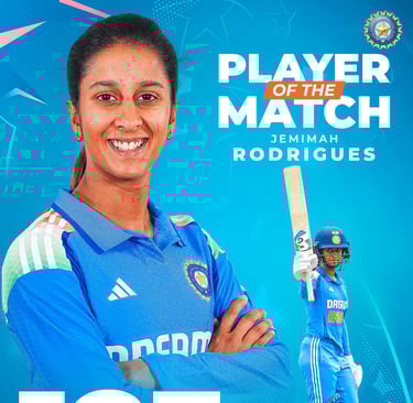 India Women’s Team defeated South Africa by 23 runs on Wednesday to secure a spot in the final of the Women’s Tri-Nation ODI Series. Jemimah Rodrigues was awarded the Player of the Match for her explosive century, scoring 123 runs off just 101 balls.